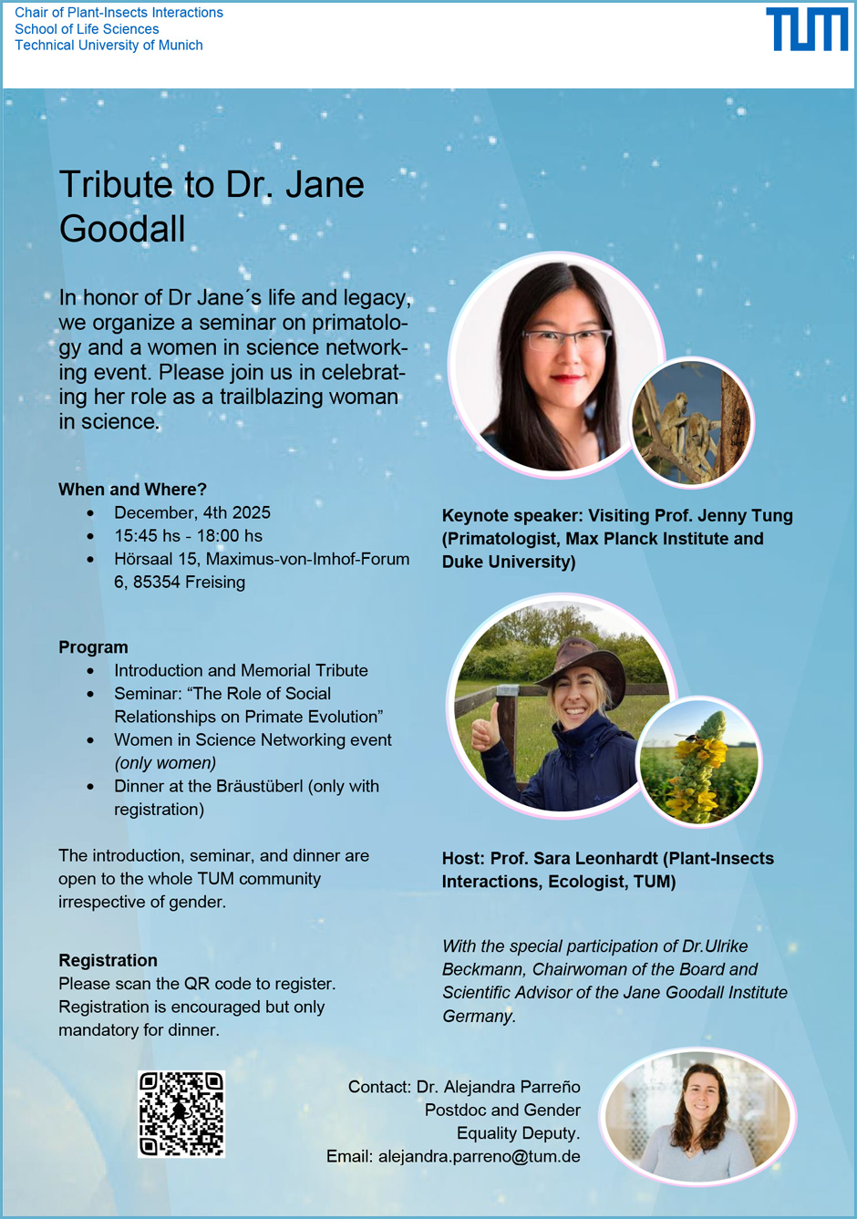 Die Veranstaltung findet zu Ehren der verstorbenen Dr. Jane Goodall statt und bietet eine inspirierende Keynote von Dr. Jenny Tung.
